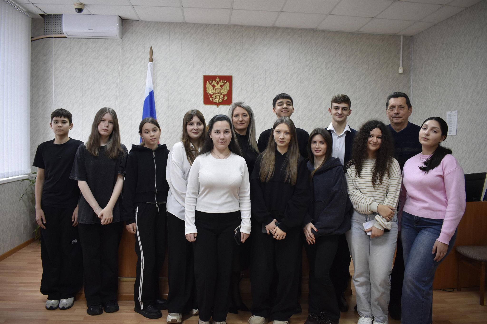26 января 2026 года в Кочубеевском районном суде проведена познавательная экскурсия в рамках реализации дополнительной общеобразовательной программы «Я юрист» для учеников 8-9 классов средних общеобразовательных школ села Кочубеевского в сопровождении педагога Кочубеевского гуманитарно-технического колледжа – филиала ГАОУ ВО НГГТИ и методиста МБУ ДО Дом детского творчества. Учащихся встретил врио председателя суда Пунев Е.И., который отметил значимость судебной системы в современном обществе, рассказал ребятам об основных направлениях деятельности суда. Экскурсию для школьников провела федеральный судья Шереметьева И.А., которая подробно рассказала о структуре суда, основных принципах судопроизводства. Учащиеся побывали в залах судебных заседаний, оборудованных системами видеоконференц-связи и аудиофиксации, в канцелярии и архиве суда, посетили музей истории Кочубеевского районного суда и ознакомились с музейными экспозициями. Школьники смогли понаблюдать за открытым судебным заседанием по гражданскому делу. Кроме того, в целях исторического просвещения, учащимся был продемонстрирован подготовленный исторической группой 1-го Западного окружного военного суда фильм – доклад, посвященный судьям и работникам военных трибуналов - участникам Зимней войны, в котором отражены правовые основы мобилизации и деятельности военных трибуналов, организация судебной работы с приведением обзоров практики применения уголовного законодательства. Целью мероприятия является знакомство с профессией юриста, повышение правового воспитания молодёжи, формирование уважительного отношения к закону и обществу. |